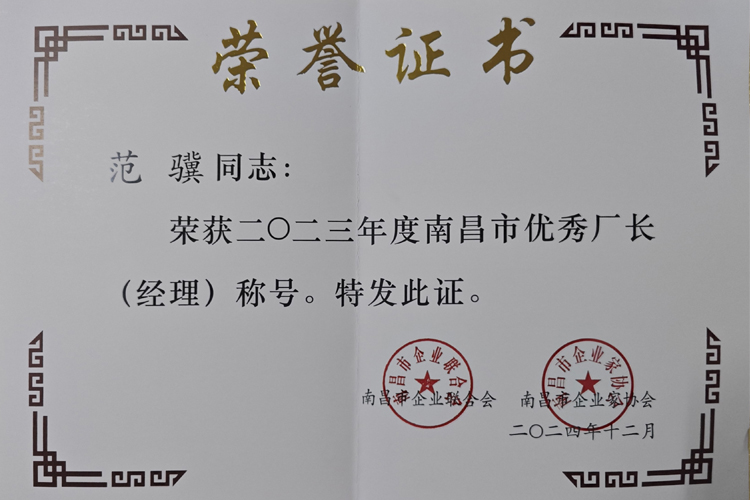 近日,南昌市企業(yè)聯(lián)合會、南昌市企業(yè)家協(xié)會正式發(fā)布《關(guān)于表彰2023年度南昌市優(yōu)秀企業(yè)、優(yōu)秀企業(yè)家、優(yōu)秀廠長(經(jīng)理)的決定》。公司憑借卓越的綜合實(shí)力與突出的社會貢獻(xiàn),榮獲“2023年度南昌市優(yōu)秀企業(yè)”稱號;公司董事長丁杰獲評“優(yōu)秀企業(yè)家”,總裁范驥獲評“優(yōu)秀廠長(經(jīng)理)”。
